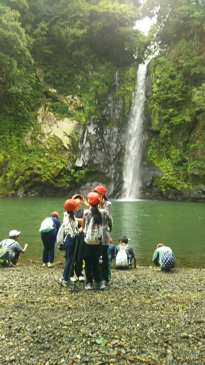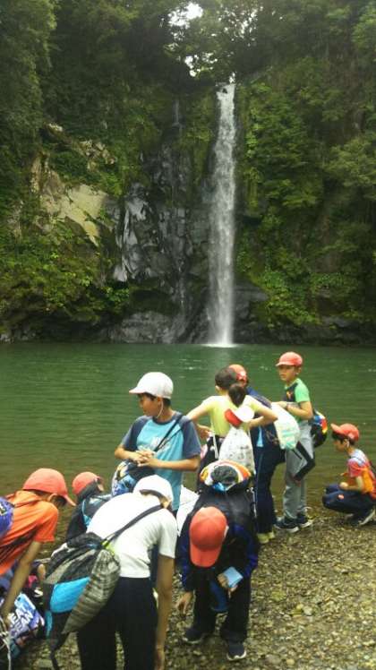 登山、飯盒炊爨から宿舎に戻り、休憩してから、宿舎近くの八反の滝へ散策に出かけました。