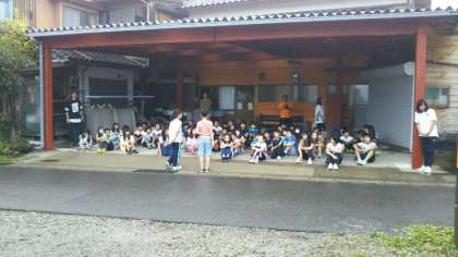 朝の集いの時間には、ちょうど雨がやみました。