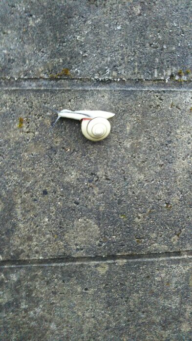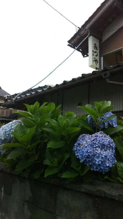 カタツムリが、出てきました。紫陽花の花の色が鮮やかです。
