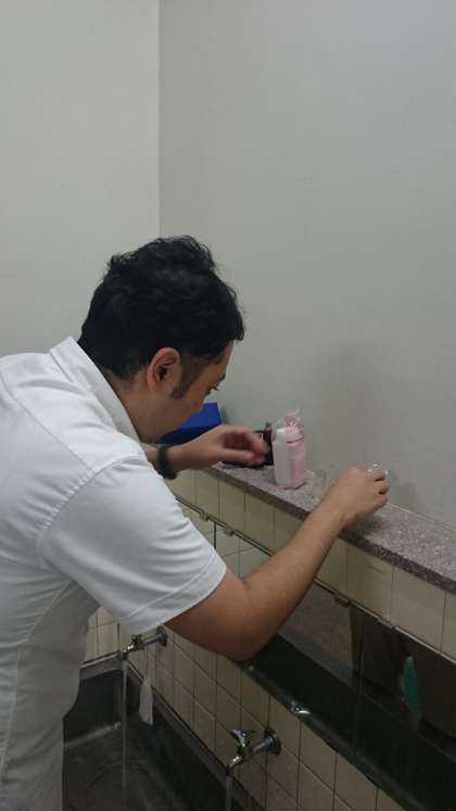 上水道水質検査は春と秋に実施されます。学校のすべての上水道の検査をします。
