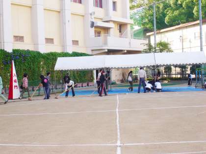 延期になった運動会。早朝6時半ごろから、会場準備にとりかかりました。シート敷き、休憩ブースのテント張り、グランドの整地エトセトラ。7時半からPTAの方々の協力も得て、無事開催の運びとなりました。