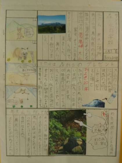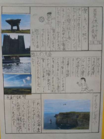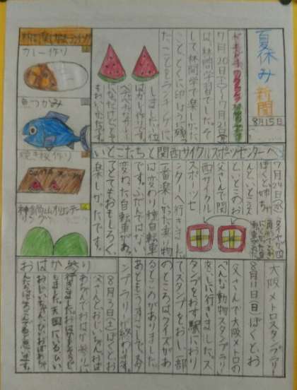 5年生の教室に、夏休みの思い出をまとめた新聞が貼ってありました。