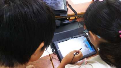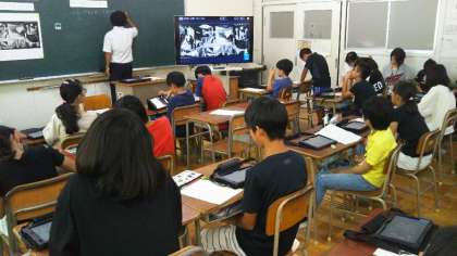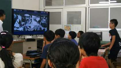 6年生が、図画工作の学習でピカソが描いた「ゲルニカ」を鑑賞しました。