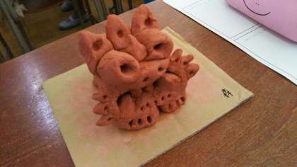 先生から基本的な作り方を教えていただき、一人一人の子が、世界で一つだけの自分のシーサーをつくりました。
