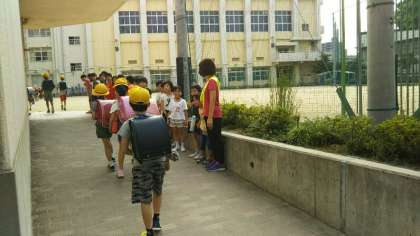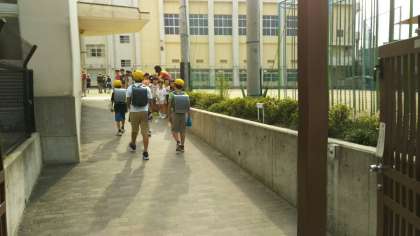 今日は、1年1組の子どもたちが、通用門のところに並び、登校してきた子どもたちに笑顔で「おはようございます」とあいさつをしてくれました。