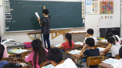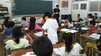 4年1組で教育実習をしている学生が、初めて授業をしました。