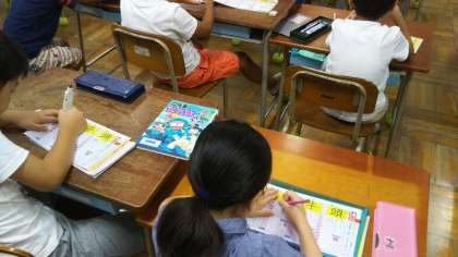 2年1組で実習生が、新出漢字の指導をしていました。少しずつ指導の仕方を学んで行っています。