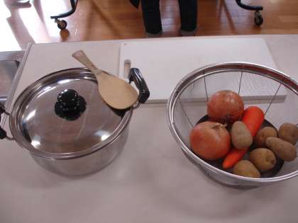 今日の夕ご飯は、子どもたちと保護者で一緒にカレーを作ります。