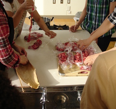 16時から始める共同作業の前に、お母さんたちの下準備。
