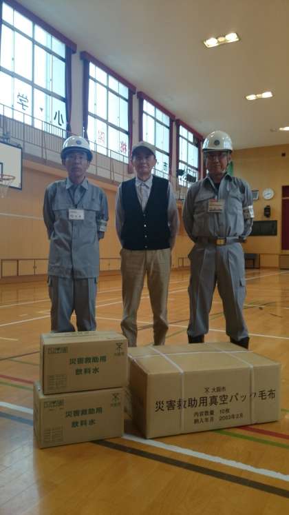 寺井さん(区役所)澤村さん(桃陽地区 災害救助青年部 代表)粂川さん(区役所)