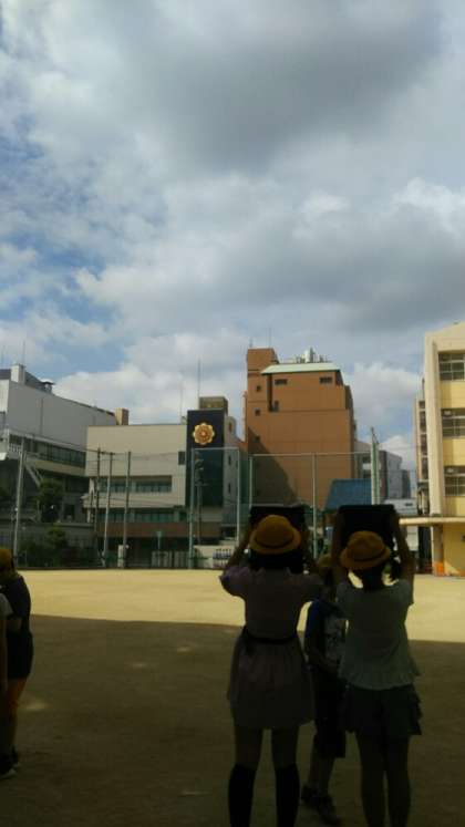 5年生が、理科の学習でタブレットPCを使って、雲の動きを観察していました。