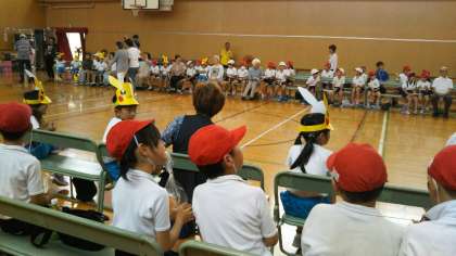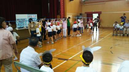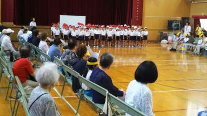 桃陽地域の高齢者の方と2年生の子どもたち、校区にある「こでまり保育園」の5歳児さんで「ふれあい運動会」をしました。