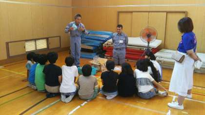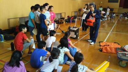 校庭キャンプ2番目のプログラムは、防災体験です。