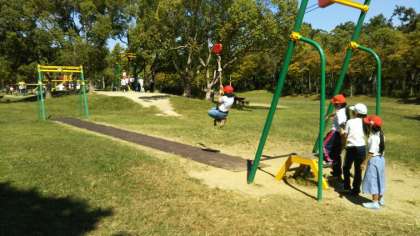 お弁当を食べた場所にも、いろいろと楽しい遊具がありました。