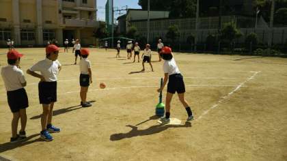 4時間目、爽やかな天気のもとで、4年生が体育をしていました。