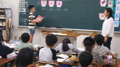 写真上:4年算数 写真中:5年図画工作 写真下:6年総合