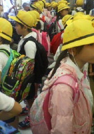 電車の中です。 桃陽小伝統の立ち方! 健在です!!!