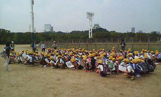 オリエンテーリングの説明を聞いています。2年と4年が仲良くクイズを解きます。