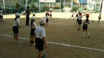 11月になりました。ようやく運動しやすい気候になってきました。運動場で2年生が体育をしています。