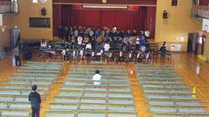 1時間目に、6年生が、学習発表会の練習をしていました。