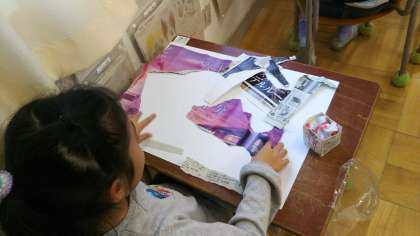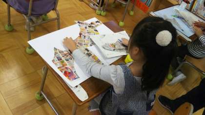 紙をやぶいてできた形から、「見立て活動」を行っています。