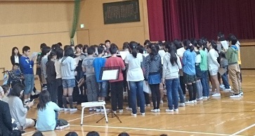 ○まず、6年生が宮川さん作曲の「風のオリヴァストロ」を歌います。