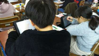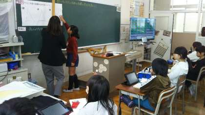 タブレットPCを使って考えたり、友だちと考え方を説明しあったりして理解を深めていました。