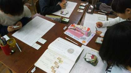 4年生が、国語の時間に百人一首について学習していました。