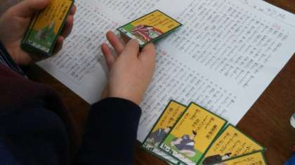 最初から全部を覚えるのは難しいので、まず十首選んで札をとるようにし、慣れてきたら徐々に札の数を増やすとよいですね。