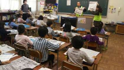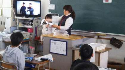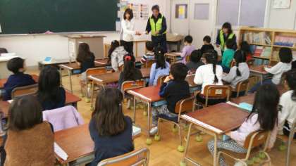 当初は、桃陽グループ(たてわり班)での実施を予定しましたが、週末になってインフルエンザに罹患して欠席する児童が増えた学級があったため、異学年間での接触をできるだけ避けるために、学級単位で教室でテレビ放送による訓練に切り替えました。地域や関係諸機関からご協力いただいた皆様には、突然の計画変更でご迷惑をおかけました。
