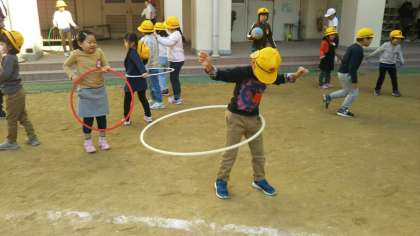 このことが、ことのほか子どもたちに好評で、たくさんの子どもが、フラフープで遊んでいます。