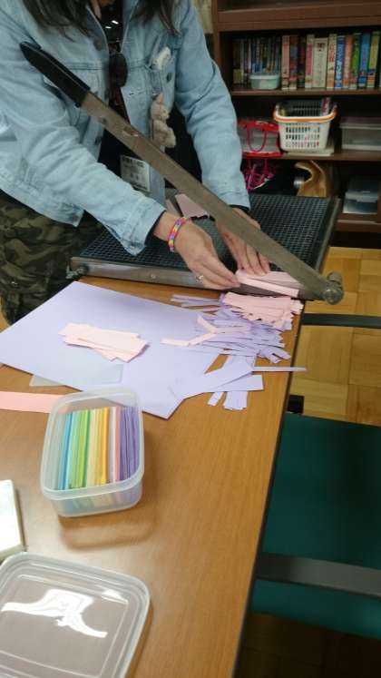 貸し出しのお仕事の合間「しおり作り」