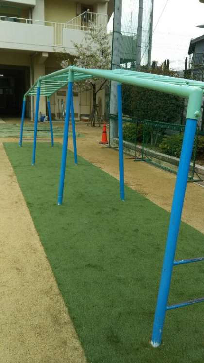 「うんてい(雲梯)」の下に人工芝を敷きました。