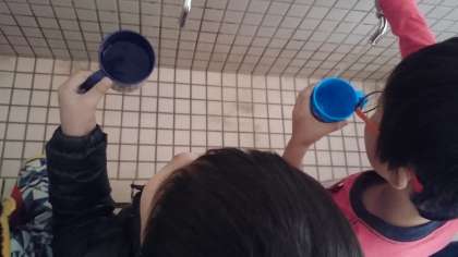 給食の後、ぐじゅぐじゅぺ、ぐじゅぐじゅぺ・・という歌が校内放送される中、うがいと口をゆすぎました。