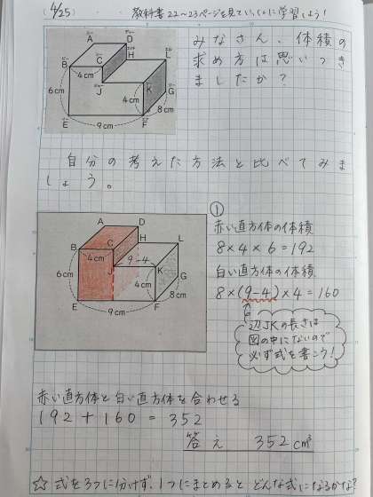 Lの形をした箱の体積を自分なりにもとめてみましたか?