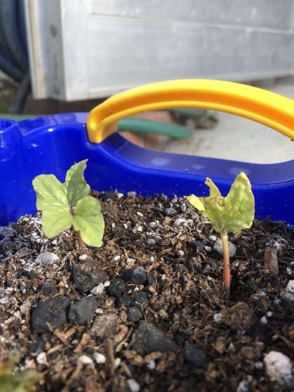 めが でてきて はじめての はっぱを しよう(ふたば)と いうんだよ!