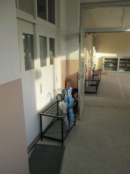 かさたての向こうに隠れています。