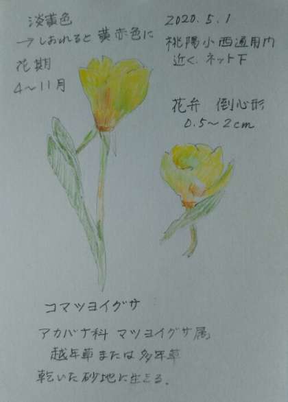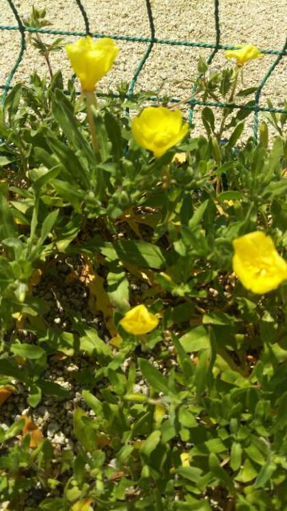 マツヨイグサ(待宵草)にも、いろいろ種類はあるのですが、丈が低く砂地を好む「コマツヨイグサ」ではないかなと思います。