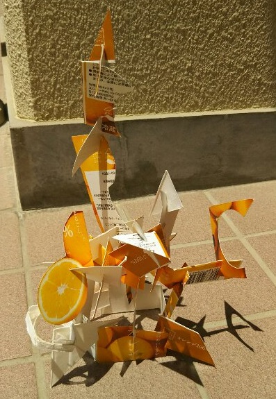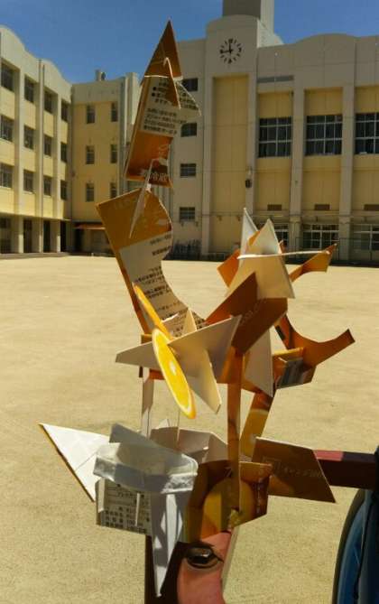 特に何を表しているわけでもありません。小学校図画工作3年生の「クミクミックス」という題材をやってみて、できた形です。