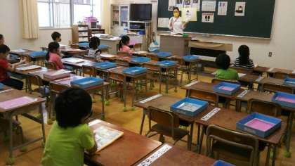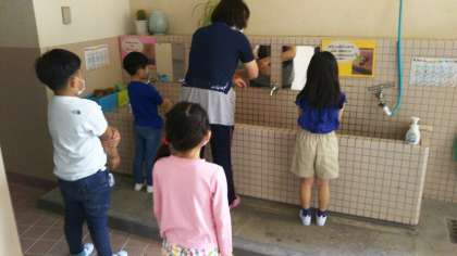 うわぐつにはきかえることやトイレの使い方、朝学校に来た時にすることなどを担任の先生からひとつひとつていねいに教えていただきました。