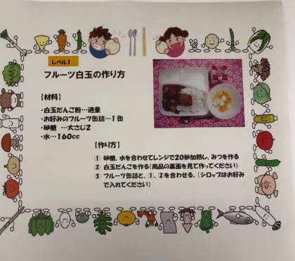 今日のお家でできる給食献立は、【フルーツ白玉】です。
