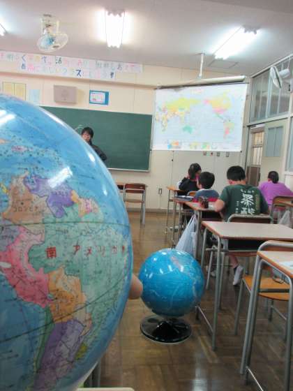 夕陽丘中学校の校区にある小学校3校(桃陽小・五条小・生魂小)が、夕中で授業を受けました。