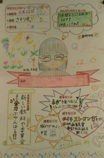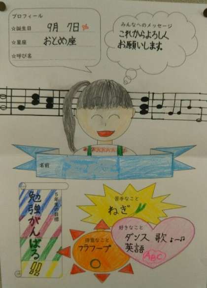5年生の教室には、自己紹介カードが掲示されていました。