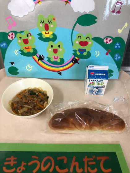 今日の給食 ●マーボーはるさめ ●おさつパン ●牛乳