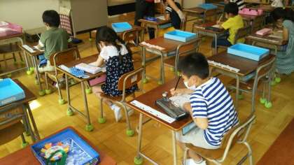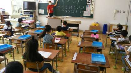 分散登校が始まって4日目。1年生では、ひらがなの学習も始まっています。