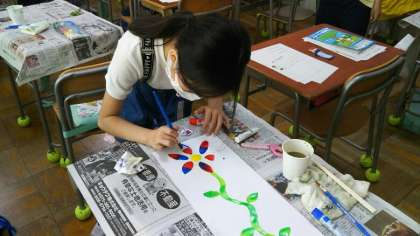 4年生が、図画工作で、「まぼろしの花」という絵に表す活動に取り組んでいます。