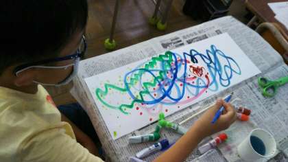 子どもたちは、想像することを楽しみながら、集中して表現していました。