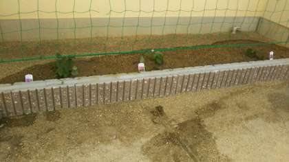 休校期間中に、東館1階1年1組教室の運動場側に、花壇を作りました。