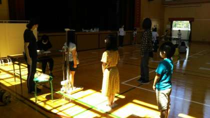 ソーシャル・ディスタンスをとりながら、順序よく測定できています。