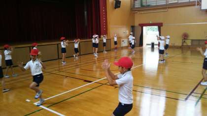 3年生が体育の時間に、ノリノリでダンスをしていました。